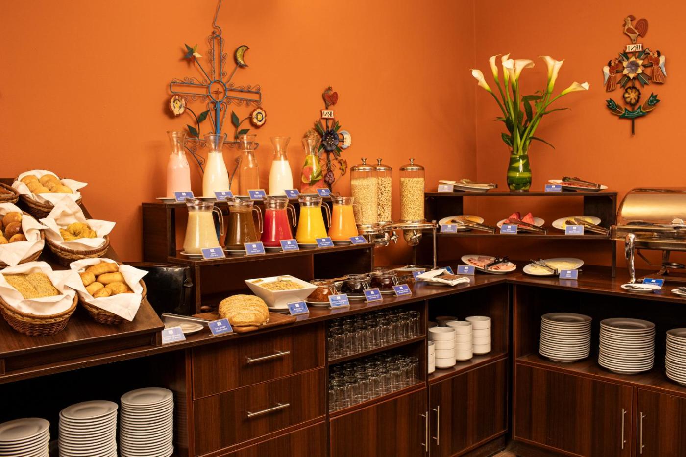 The hotel offers a full buffet breakfast which can be enjoyed at the checkered marble floor patio decorated with plants. The restaurant offers á la carte dining options.